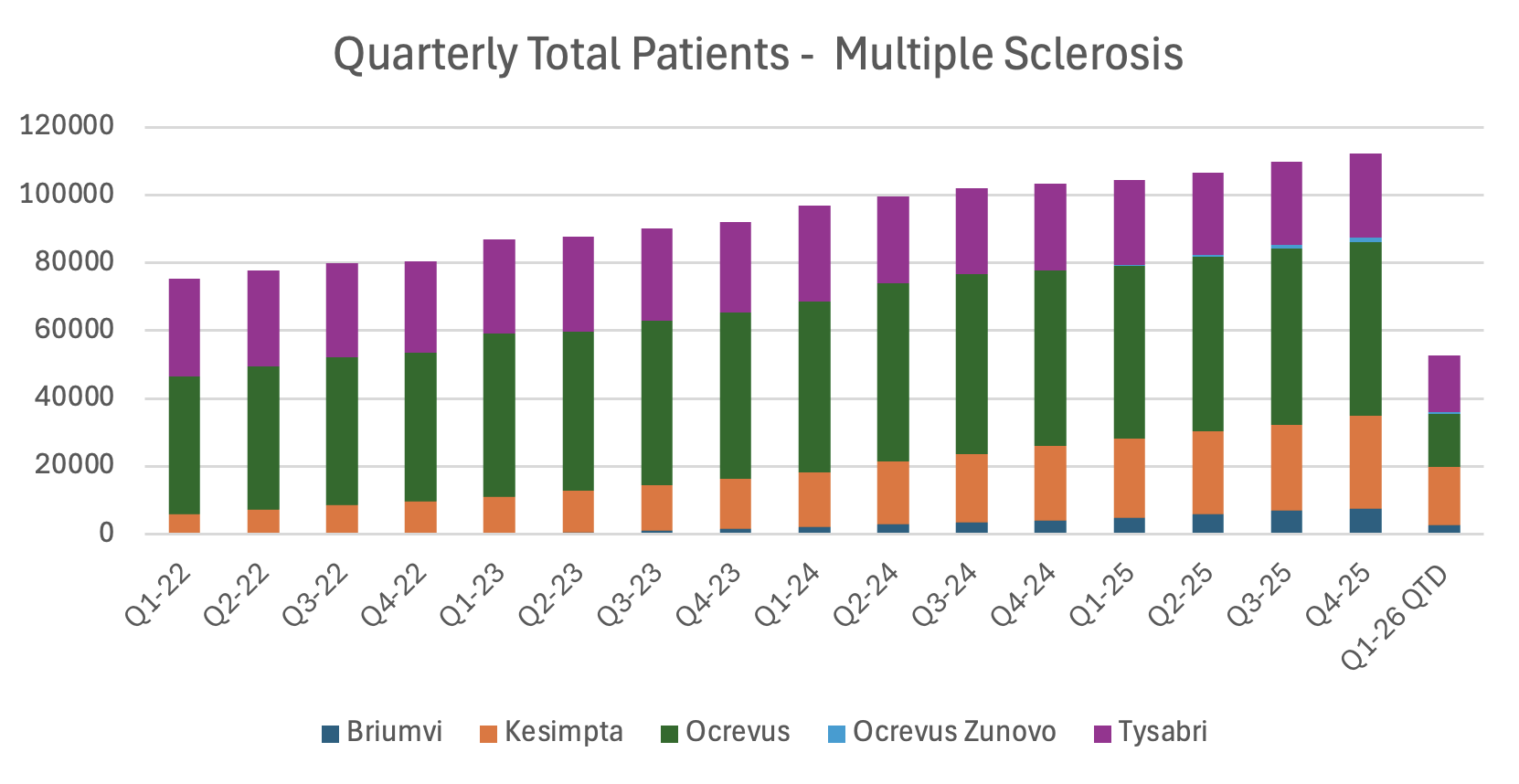 Below are examples of how these new projections can be used to track Total Patient trends across various products.